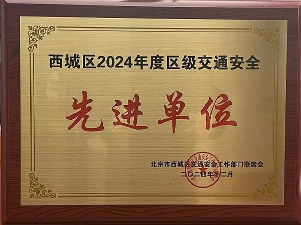 近日,经北京市西城区交通安全工作部门联席会审核、批准,中信金资实业被评为西城区2024年度交通安全“先进单位”。